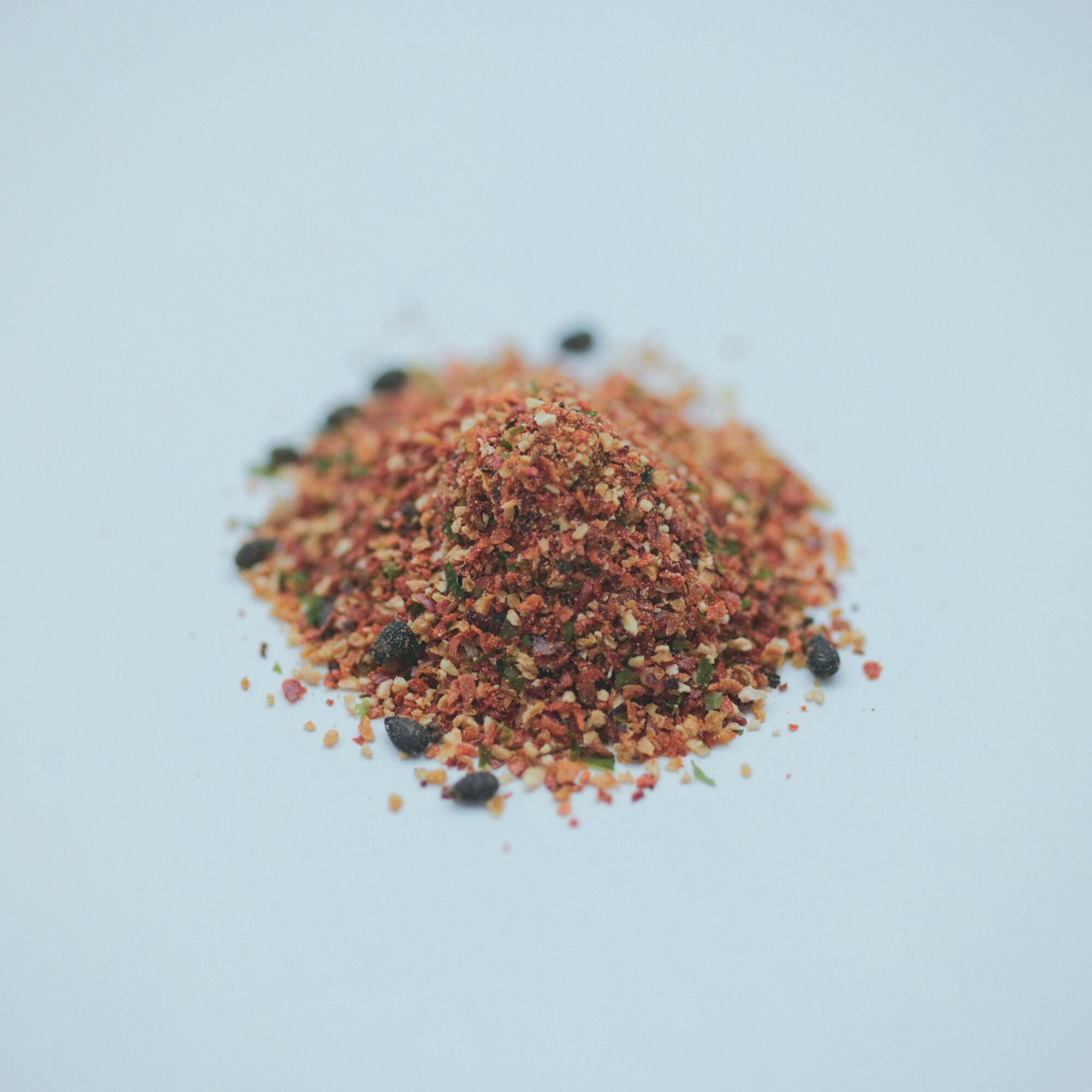 Shichimi-style seasoning made by a bean specialty store. Roasted black bean powder gives the seasoning a deep aroma and flavor, while yuzu brings in a refreshing citrus aroma.